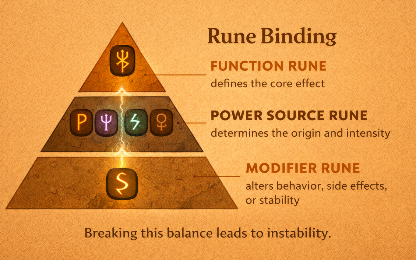 - Modifier Rune – alters behavior, side effects, or stability